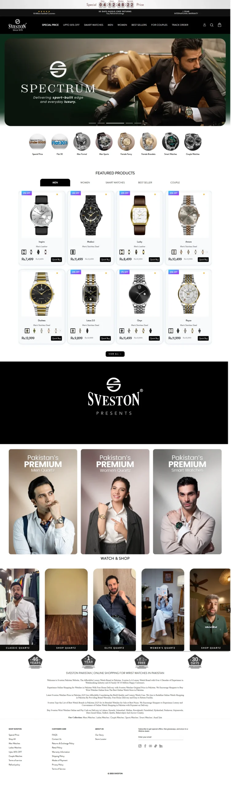 Sveston Watches is a leading online destination in Pakistan for quality timepieces—offering everything from classic stainless-steel watches to feature-rich smartwatches and elegant couple sets . Dabang Tech transformed their digital storefront into a seamless, trustworthy, and visually appealing e-commerce experience, built to reflect Sveston’s reputation for affordable luxury and customer confidence.