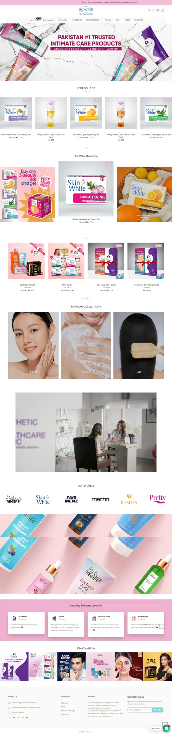 Skincare Pakistan is a leading Pakistani FMCG skincare brand, offering a range of natural and halal-certified products like soaps, lotions, creams, and face washes. With a market presence since 2005 and headquartered in Karachi, they distribute popular lines such as SkinWhite, FairMenz, and Keshia. The brand prides itself on being ISO, Halal, and GMP certified, delivering safe and effective beauty solutions tailored to local preferences.